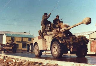 Aquí tomando el viejo y excelente kit de MONOGRAM (ex RENWALL) del WHITE, escala 1/35, el autor realizo una versión del Ejército Argentino de los años 60, que representa a una Unidad de tiradores de la Escuela de Comunicaciones, la cual, al mando de su Jefe el Mayor Jorge Méndez Guerín, del 2 al 5 de Abril de 1963, integraron la llamada Fracción "Colorada" en un enfrentamiento interno de la Política Argentina acerca de la postura respecto a la permanencia en la Presidencia del Dr. Guido y a la salida electoral que se anunciaba para Octubre.